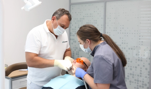После примерки готовых протезов врач надежно