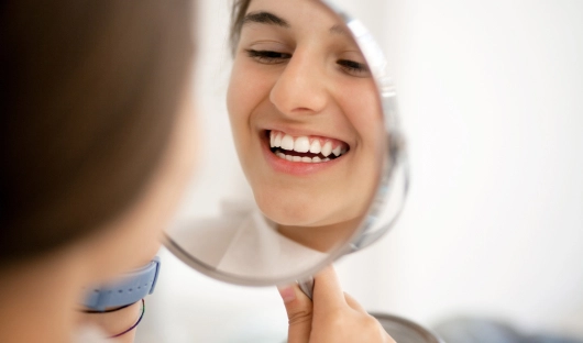 На этом этапе врач устанавливает макет будущих виниров из композитного материала в полость рта пациента для оценки внешнего вида и функциональности. Пациент может протестировать ее в течение нескольких дней.